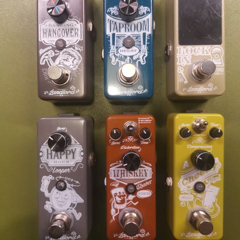 Pent brukte pedaler selges samlet eller hver for seg. Pris står i billedteksten.