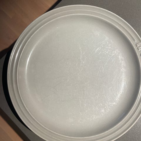 Selger 6 Le Creuset middagstallerkener i fargen "Meringue". Selges helt nytt, lappene er fortsatt på og aldri blitt brukt.