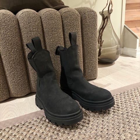 Regnstøvletter i størrelse 38 med svart farge. Lite brukt. Støvlene har en solid såle med godt grep, egnet for vinterbruk.
