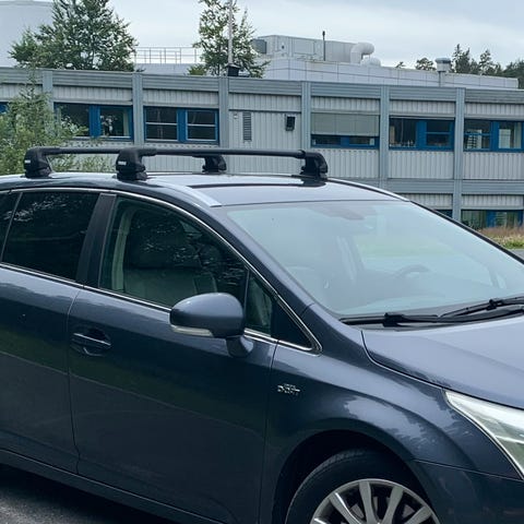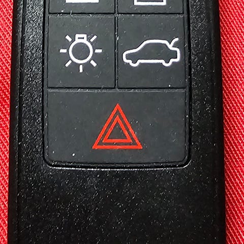 Bilnøkkel med tre knapper for låsing, opplåsing og åpning av bagasjerom. Inkluderer utskiftbare nøkkelblader og deler. Passer til flere bilmodeller med tilsvarende nøkkeldesign.
