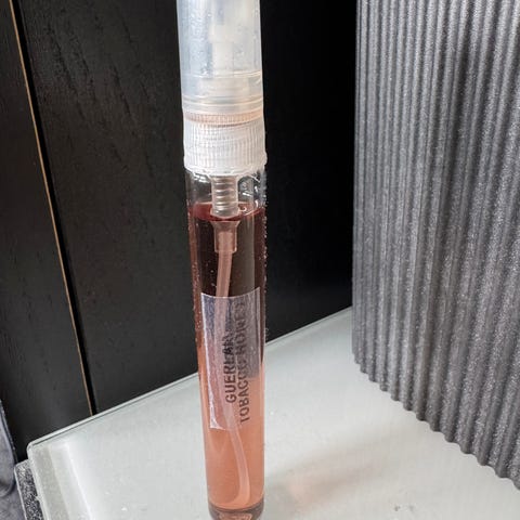 Guerlain Tobacco Honey parfyme i glassflaske med svart etikett. Duft med noter av tobakk og honning. Dette er 200ml flaske med 110ml igjen. Esken medfølger.