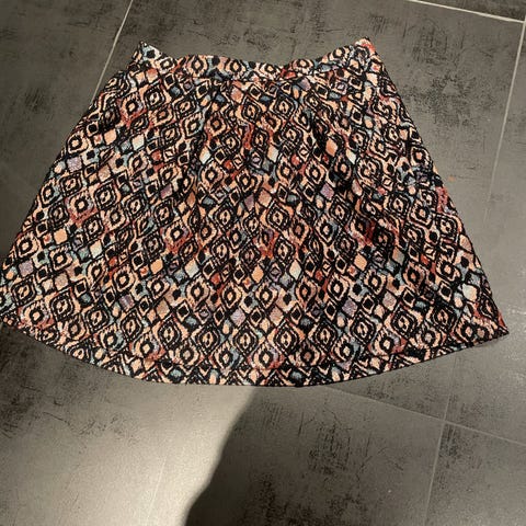 Baum und Pferdgarten paljettskjørt i svart farge, størrelse 36. Laget av materiale med paljetter, designet for kvinner.Elastisk linning. Meshfôr. 100 % polyester . Brukt kun én gang.