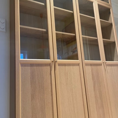 Enten kun Oxberg skapdør eller gjerne hele Billy bokhylle 80x28x106 og 40x30x106 med Oxberg skapdører