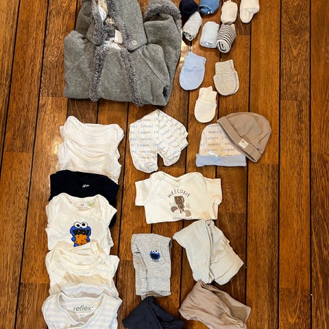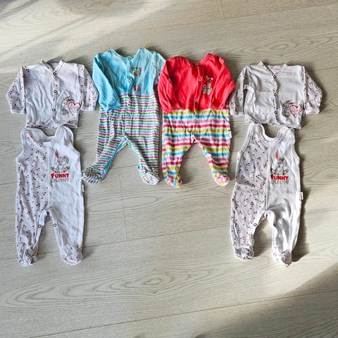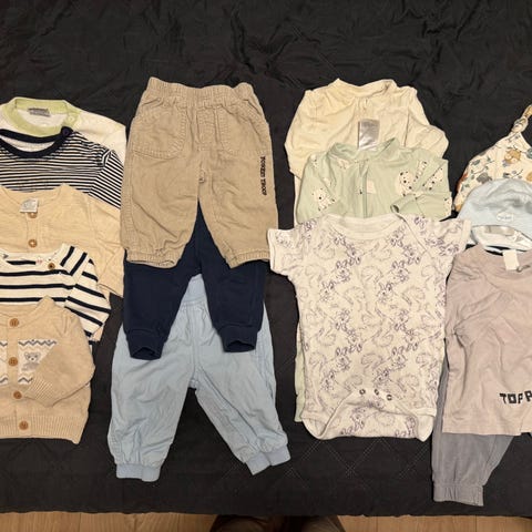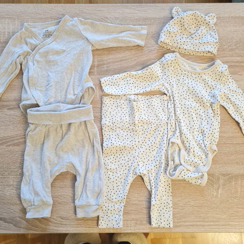 Pent sett bestående av genser og bukse i myk bomullsstrikk med trykk.
