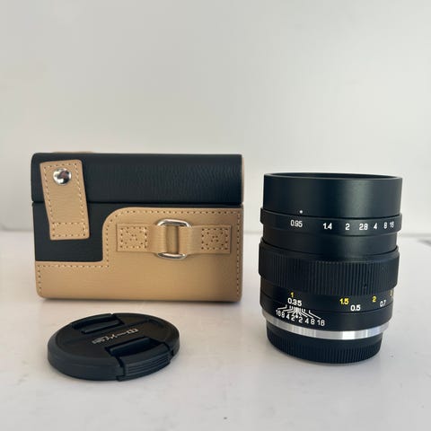 Tungt og solid objektiv i metall, med unik blender på f1.4 som gir flotte uskarpe bakgrunner med nydelig bokeh. Alltid hatt på UV filter for å beskytte frontelementet.