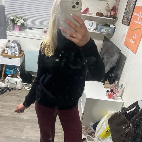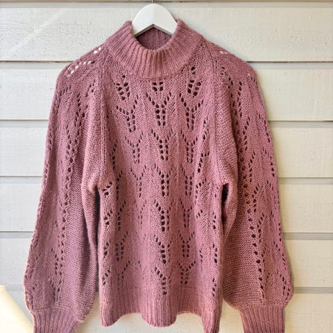 Selger en høyhalset litt kortere strikkegenser da den ikke blir brukt💕 Mørk rosa
