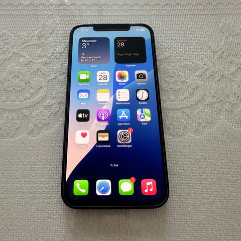 Apple iPhone 12 Pro Max med 128 GB lagringskapasitet selges. Baksiden er knust men har ingen løse deler. Eller fremstår telefonen som pent brukt. Batteritilstanden er 85 %. Ladekabel kan medfølge.