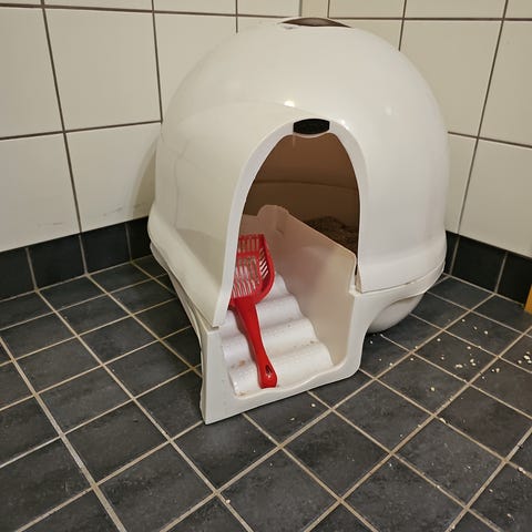 Fødekasse kjøpt i Danmark, brukt til tre kull Russian Blue.