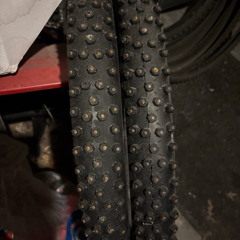 Selger tre «nye» ice spiker piggdekk.