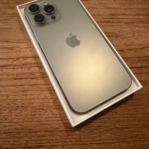 Selger min iPhone 16 Pro Max 512 GB i fargen hvit titan.