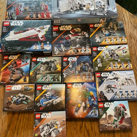 Selger Lego Star Wars Imp. Star Destroyer 75055 uten eske på Askøy ved Askøybrua. Settet er komplett med unntak av klistremerke med trekanter på 1x4 brikke på toppen av skipet, og hologram av Palpatine. Det siste er erstattet med minifigur av Darth Vader.