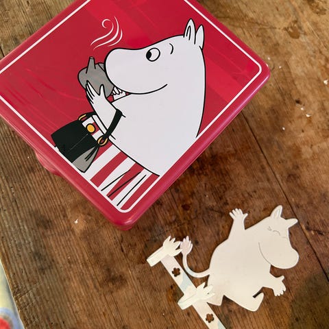 Teboks i tinn med Mummi-motiv og lufttett lokk. Passer perfekt til teposer eller fersk te.
