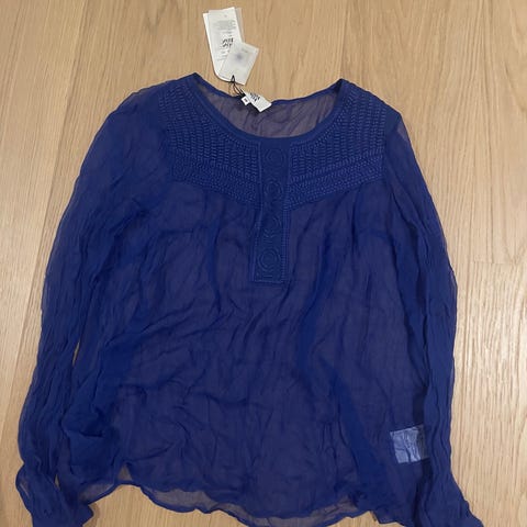 Denne toppen er mørkeblå og med glitter den er i størrelsen 158-164 men passer både til de som er litt lavere og de som er litt høyere.
