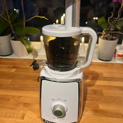 Philips Avance blender med hvit base og glasskanne. Utstyrt med flere hastighetsinnstillinger og funksjon for rask rengjøring. Passer til blanding og miksing av ulike ingredienser.