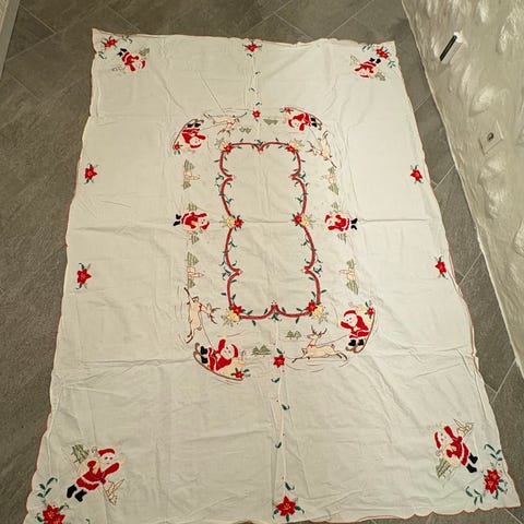 Nostalgisk juleduk og to bordbrikker i bomull