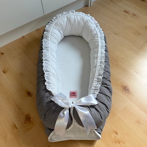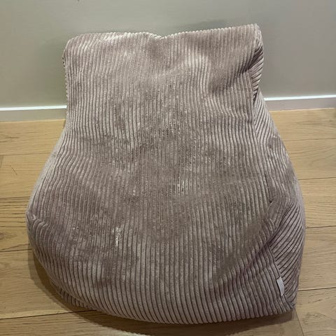 Selger en pent brukt saccosekk til barn i fargen brun. Meowbaby fra Jollyroom.