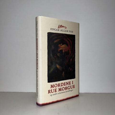 Edgar Allan Poe The Complete Tales and Poems bok med svart omslag og røde dekorative detaljer. Inneholder et utvalg av Poe sine noveller og dikt, blant annet kjente titler som The Raven, The Tell-Tale Heart og The Fall of the House of Usher.