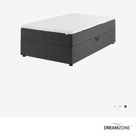 Selger en pent brukt IKEA seng i grå tekstil. Sengen er komfortabel og stabil, og passer perfekt til mindre rom eller studentbolig. Under sengen er det god plass til oppbevaringsbokser / IKEA oppbevaringsesker, noe som gir smart og praktisk lagringsplass.