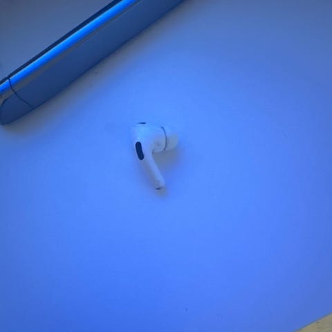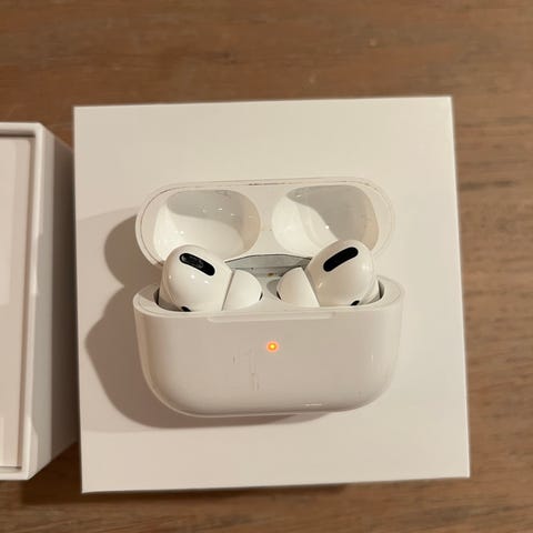 Apple AirPods Pro trådløse hodetelefoner i hvit farge. Kommer med ladeetui og en air pod så hvis du kun har en å trenger et fult sett er dette perfekt for deg
