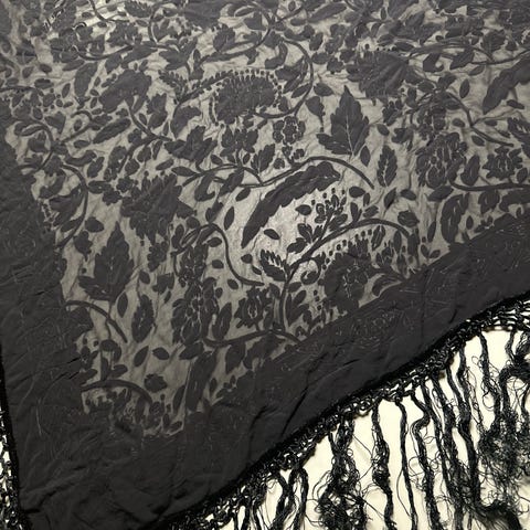 Sjal trekant/trekantsjal sort med meget pent gull broderi.