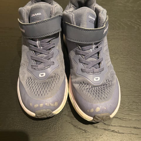 Okaki overgangssko selges str 28 , brukt av ett barn , ingen skader på skoene.