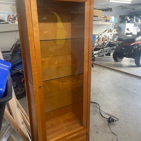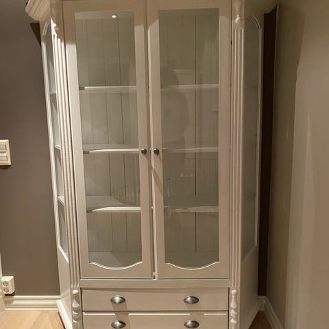 Selges veldig billig grunnet flytting. Har hatt den i ca 1,5 år, og er pent brukt. Den har 4 glasshyller og 2 plasser til som er i samme materiale som utsiden av skapet.