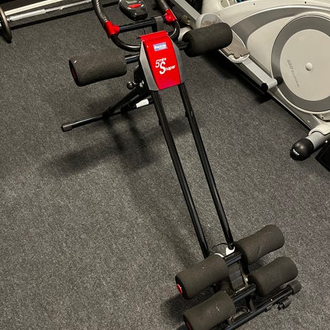 Body Action Fitness 5 Mins Shaper treningsapparat designet for hjemmebruk. Utstyrt med polstrede håndtak for komfort og en kompakt ramme som gjør den enkel å plassere i hjemmet. Egnet for generell trening og styrking av kroppens muskler.