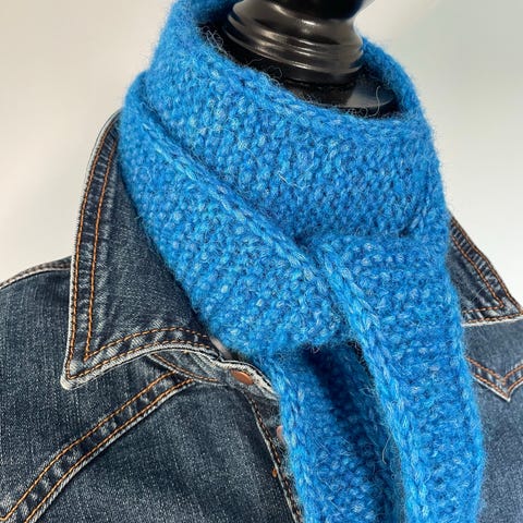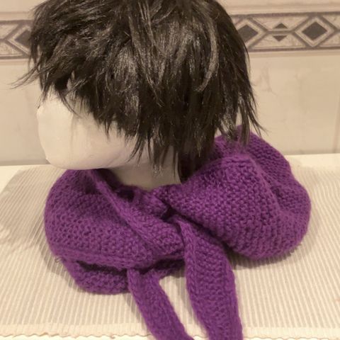 Ny håndstrikket Sophie hood, one size, burgunder i air garn. Ca:110 cm, vil nok strekke seg noe. + porto. Postnord kan bruke lang tid herfra.