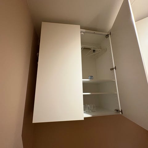 Skapet er i god stand og gir mye plass uten å ta stor gulvplass.