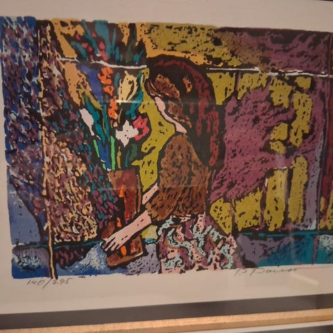 Innrammet litografi Kjell Thorjussen vintermotiv