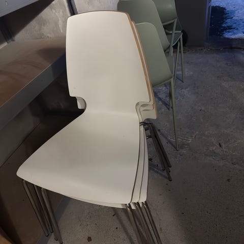 Stolene er delvis klort på av katten og ikke de fineste.