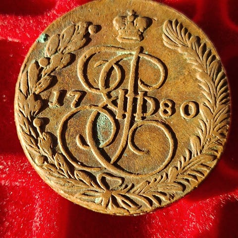 Russland 5 kopek 1726 – Jekaterinburg myntverk – til album