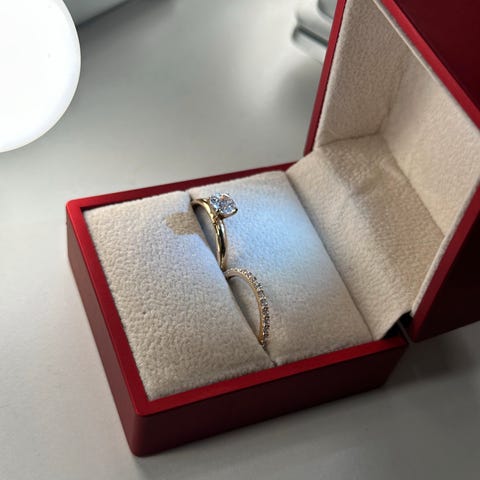 Forlovelsesring i 14 karat hvitt gull med kubisk zirkonia. Størrelse 52–53. (17). Årsak til salg: Størrelsen passer ikke. Ringen ble laget og importert fra et annet land.