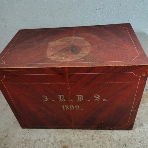 Panelet er solid og tungt, med naturlig patina og små bruksspor som gir sjel og autentisk preg.