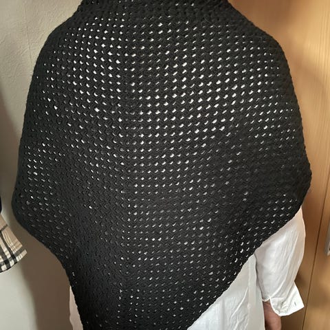 Håndstrikket/ heklet i 100 % sjal laget av hjemmelaget garn, vintage, arvet fra oldemor,