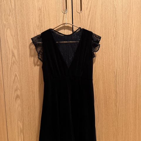 Elegant og feminin fløyelskjole i nydelig dyp rød farge. Kjolen har lange ermer, rund hals og en lett utsvingt skjørtedel med lagvis snitt som gir et pent fall. Myk og behagelig – perfekt til julebord, selskap og høytider.