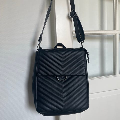 4 vesker. Mangler noe av glidelåsen på clutchen, men går greit å åpne. Ellers minimalt brukte vesker. En hvit/beige, to mørkeblå, en rosa-aktig.