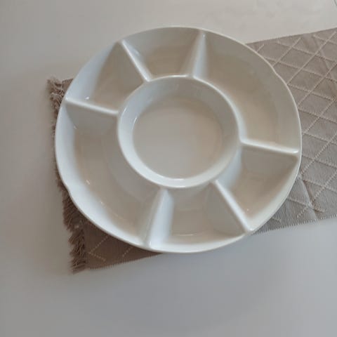 Serveringsfat for taco i porselen med fire skåler og en rund skål