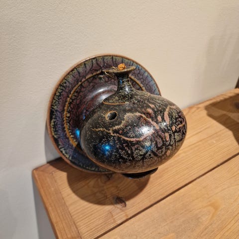 Vakker mugge i håndlaget keramikk, one of a kind, selges. I fin stand. Vintage. Vakre blåtoner og brunt, den perfekte kombinasjonen. Kan sendes.