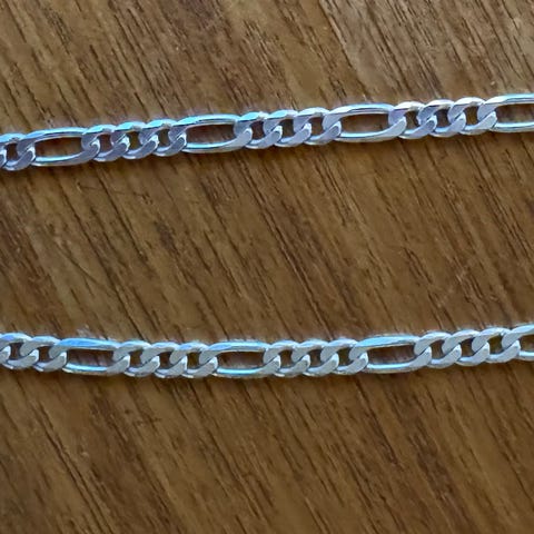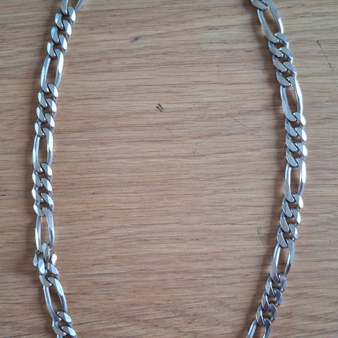 Figaro halskjede i 925s med en lengde på 50 cm, bredde 8,5 mm og veier 59,4 gram.