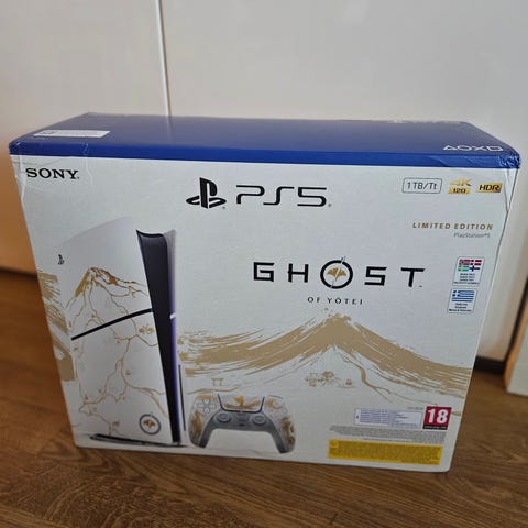 Playstation 5 med Disc. Dette er ghost of yotei versjonen. Tatt ut for å se på og pakket inn igjen.