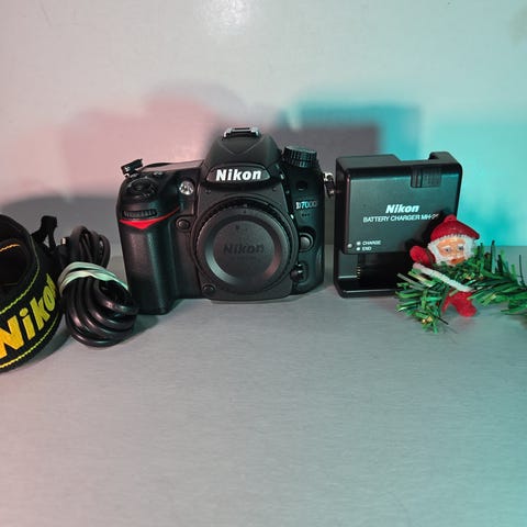 Nikon Digital speilreflekskamera. Kameraet har et justerbart bakmontert skjerm, flere kontrollknapper for fotografering, og en standard kamerastropp. Egnet for fotografering med digitale innstillinger.
