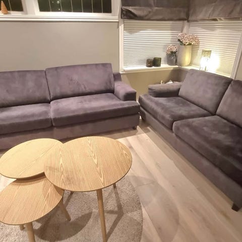 Digg og myk velour-sofa.