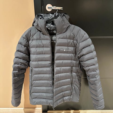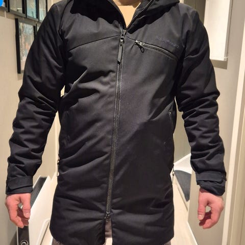 «Jakken er laget i et DWR-behandlet og FC-fritt nylonmateriale, noe som gjør den vind- og vannavvisende. Polstret med et 70/30 Bluesign®- og RDS-sertifisert dun. Lommer med glidelås på forsiden. Detaljer som du finner på jakken er blant annet to brystlommer, en innvendig lomme, brodert Sail Racing-logo på brystet og emblem på ermet.»