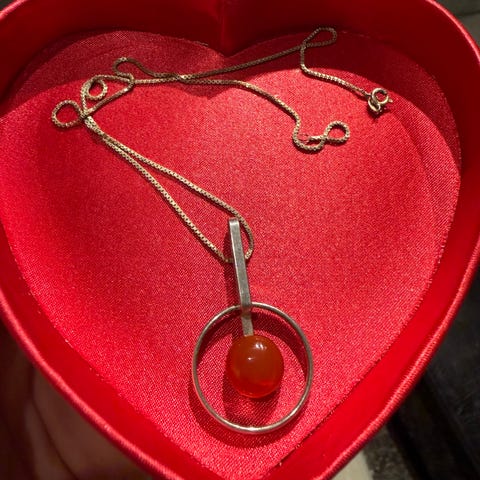 Vintage❤️Anheng med krystall og drueklasemotiv+kjede i sølv 925