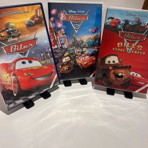 Disney Pixar Biler DVD med originalt lydspor og ekstra innhold som kommentarspor, dokumentarfilmer og musikkvideoer. Filmen er på norsk og passer for barn og familier. DVD-en inneholder hovedfilmen samt flere tilleggsmaterialer.
