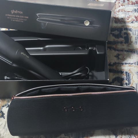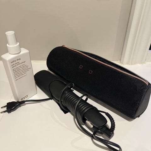 Herstyler rettetang i svart farge. Elektrisk hårrettetang med titanium plater for styling av hår.