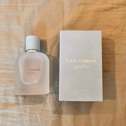 Dolce & Gabbana Light Blue parfyme med sommerlig sitrusduft. Produktet leveres i original emballasje med dekorativt blått og hvitt mønster.