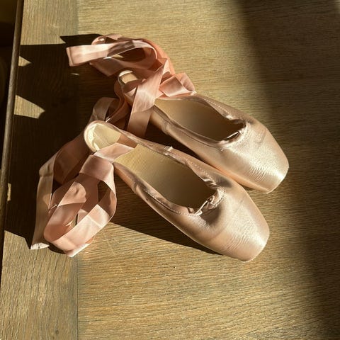 Myk ballerina med justerbar rem over vristen for best tilpasning. Myke gummisåler og søte detaljer.
