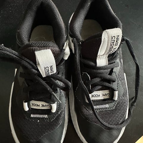 Nike barnesko i størrelse 33, unisex. Skoene er hvite og laget i materialer som gir god komfort og støtte. De har borrelås og snøring for enkel justering og god passform.
